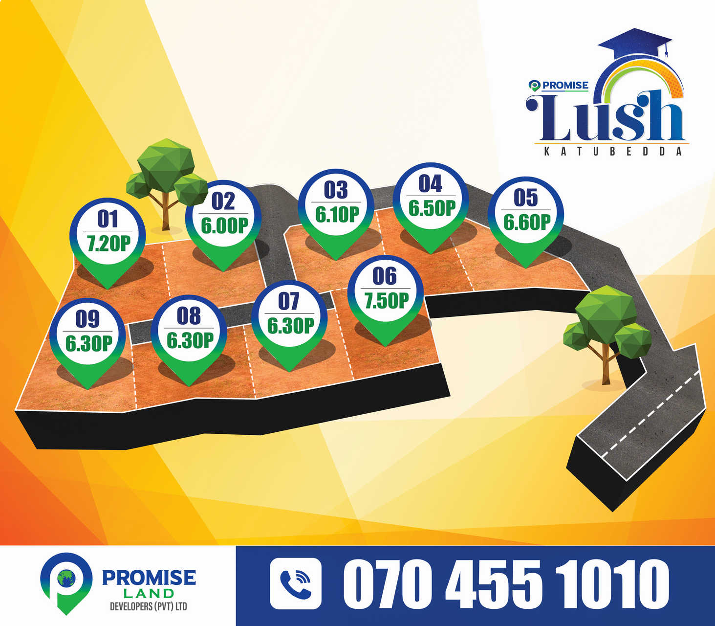 From Promise Lush by Promise Land, near University of Moratuwa, to build your dream home and invest in a serene environment at the best price. With 9 land blocks 6/7 ranged Perches, Well Developed Promise Lush, Make Your Busy Life One of Life’s Most Important Investment. Call Promise Land Today 070 455 1010